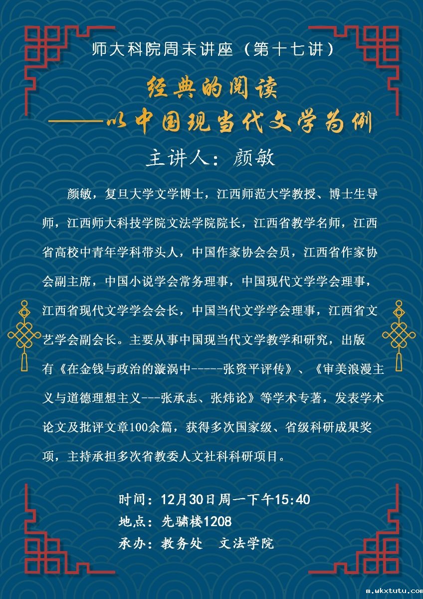 【周末讲座2019年第17讲】颜敏:经典的阅读——以中国现当代文学为例